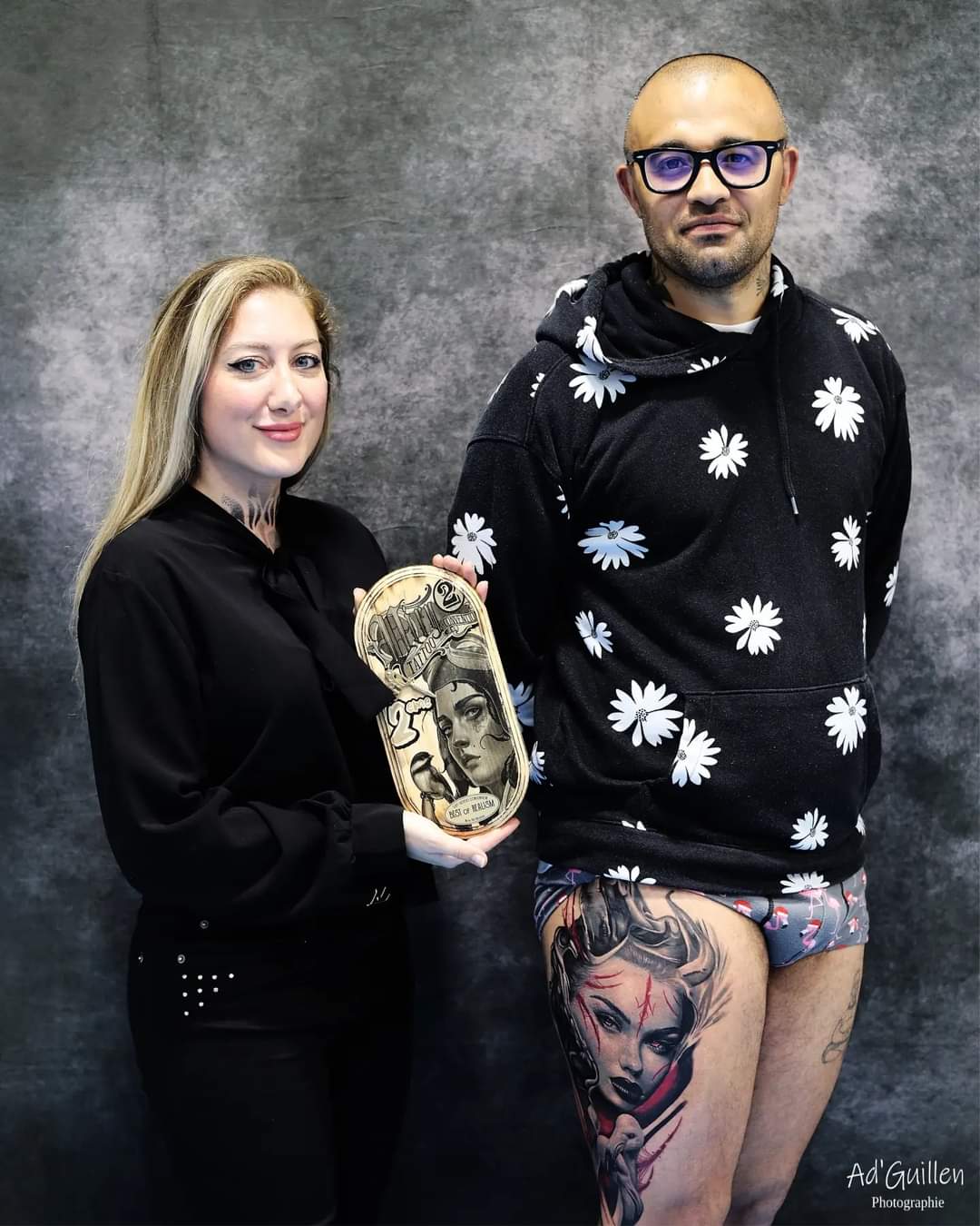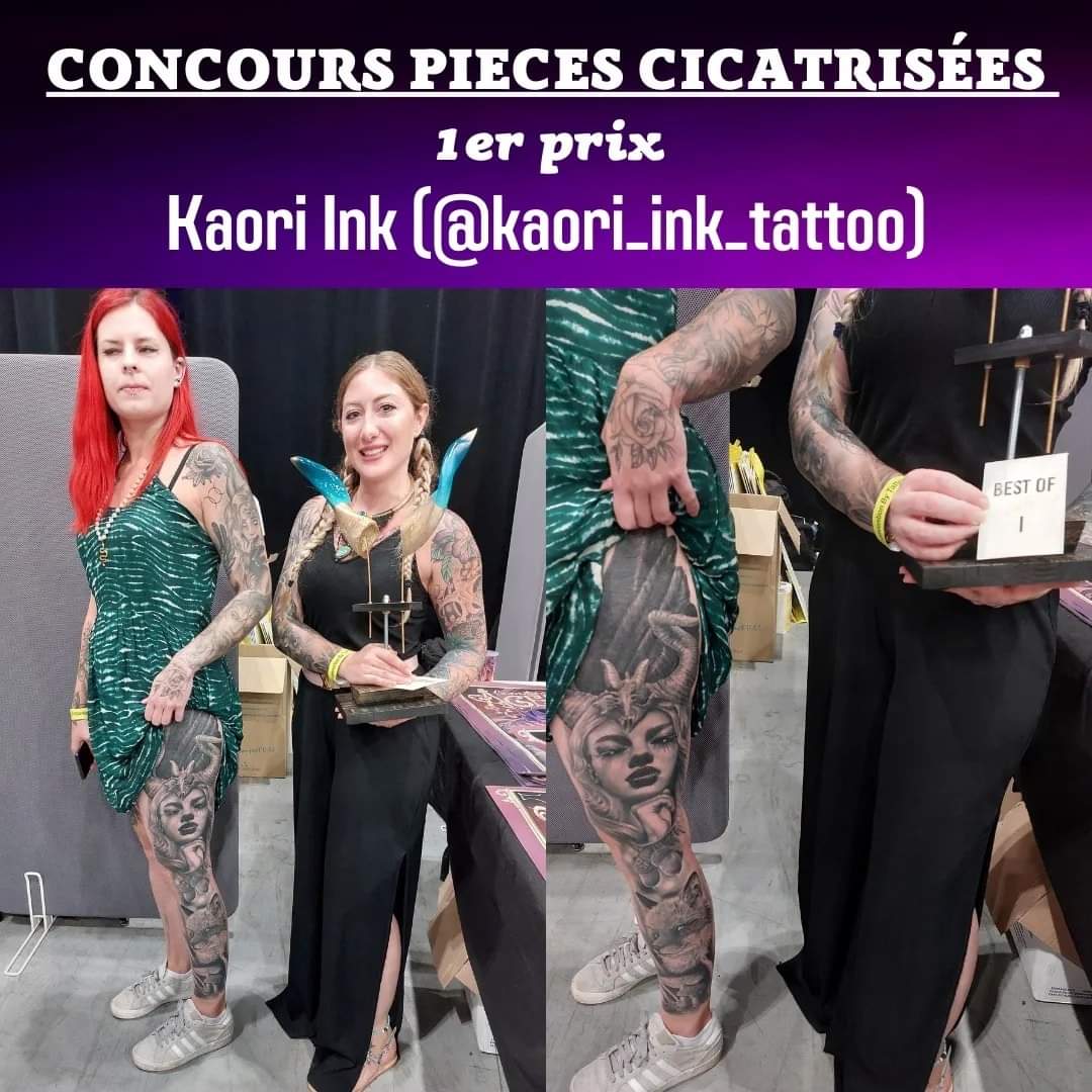 8 PRIX CONCOURS CONVENTION 2024 Agen : 2ème place Best of Realism / 2024 Viry Chatillon : 2ème place Best of Realism / 2023 Girl ink à Ozoir la ferrière : 1ère place XXL cicatrisé, 1ère place Grande pièce et Best of Show* (meilleure pièce de toute la convention*) / 2022 Agen : 1ère place pièce cicatrisée et 1ère place tatouage noir et gris / 2022 Girl ink : 2ème place grande pièce noire et grise.