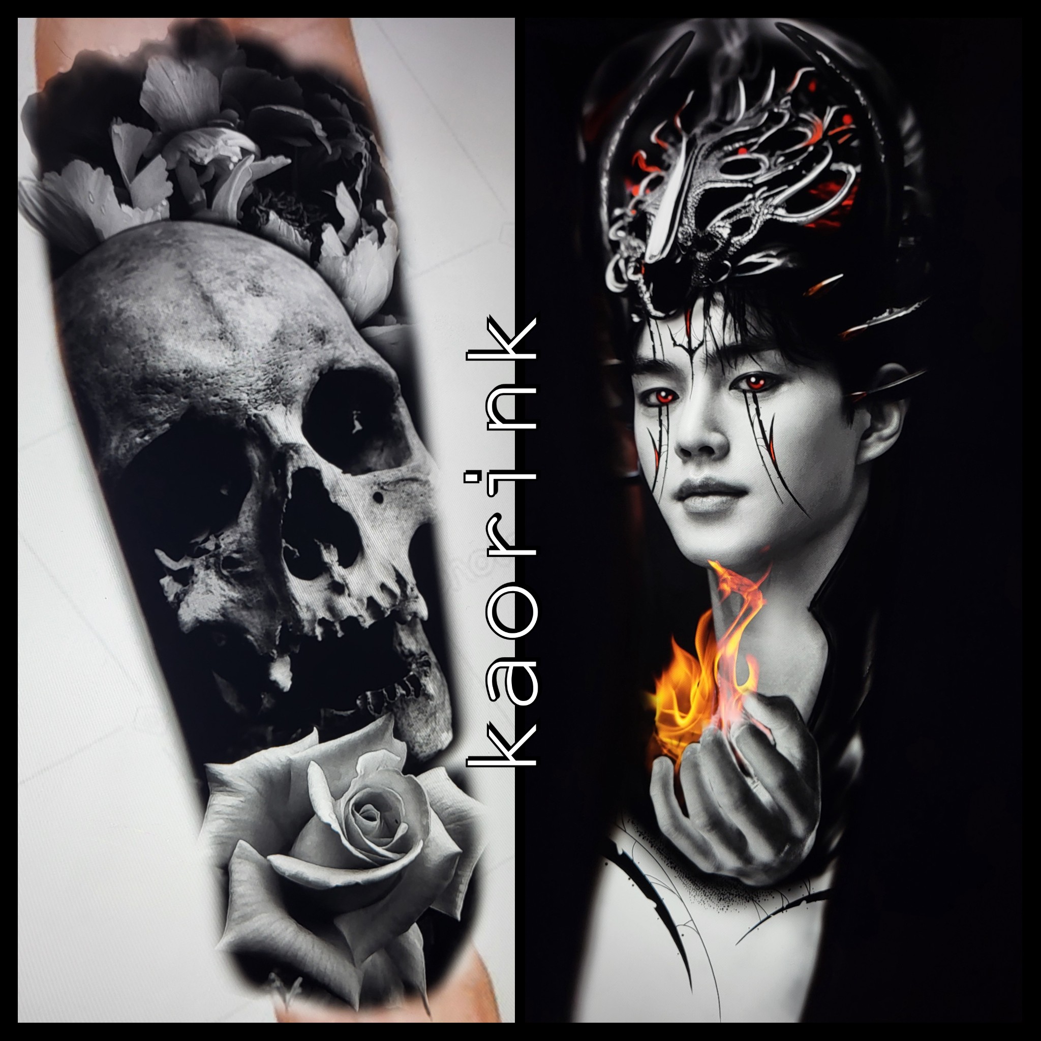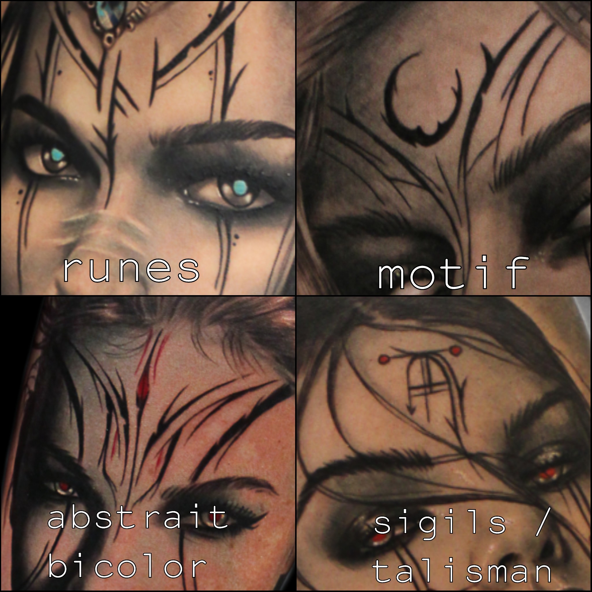 L’intégralité des designs ci-dessous est disponible. Envoyez vite un mail en joignant la photo de votre emplacement et celle de votre oeuvre coup de coeur, afin d’avoir le devis puis de le réserver. Ces œuvres ne seront tatouées qu’une seule et unique fois. Il est également possible de changer la couleur et le sens de la compo selon le côté que vous choisirez de vous faire tatouer.