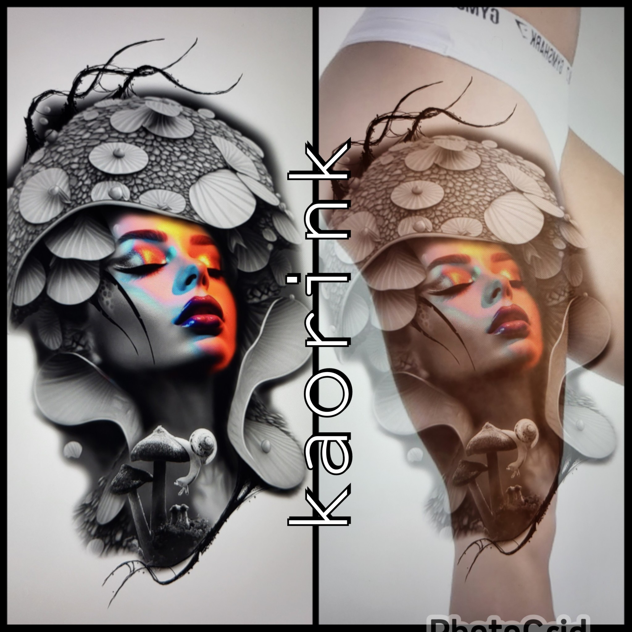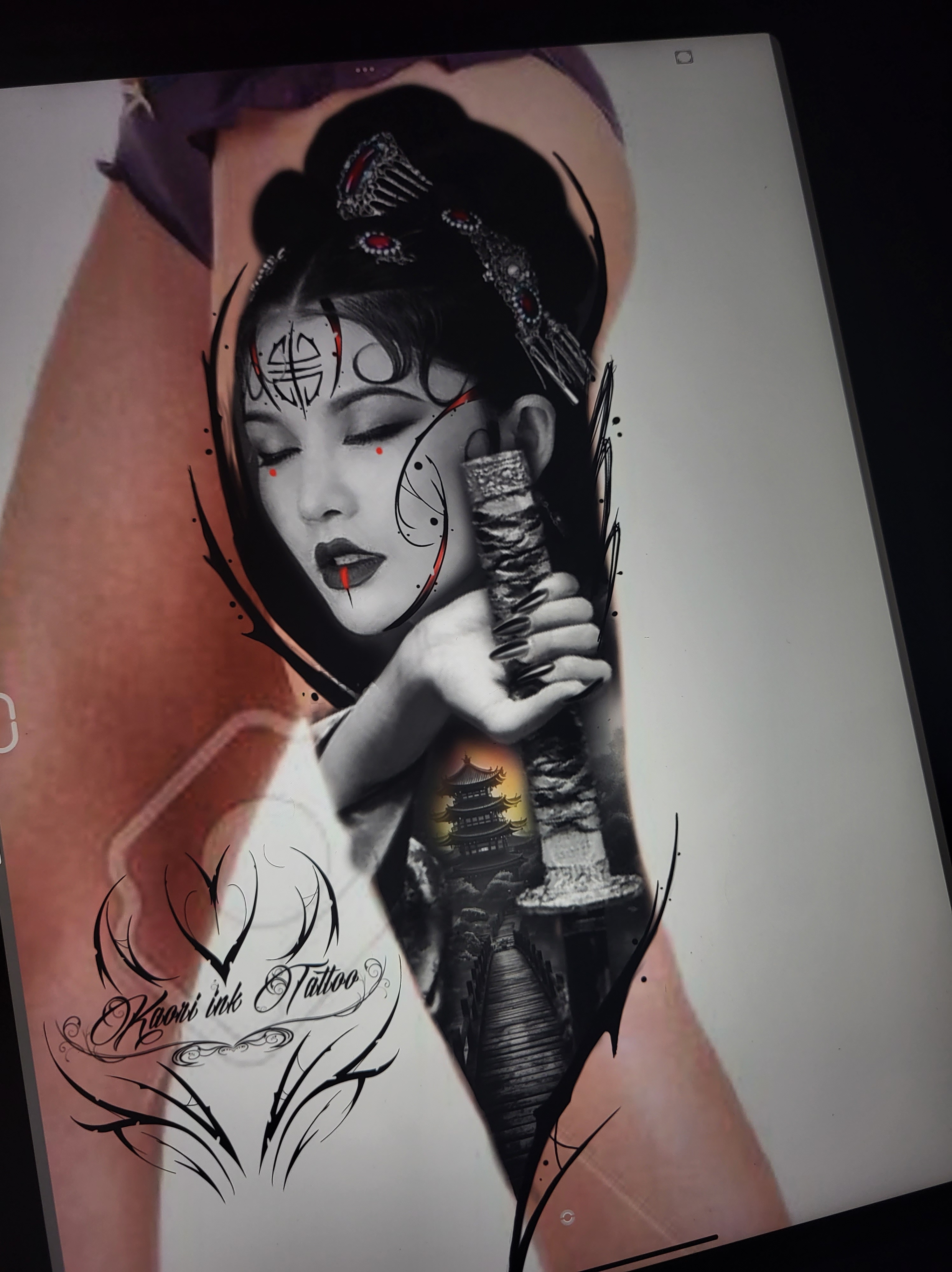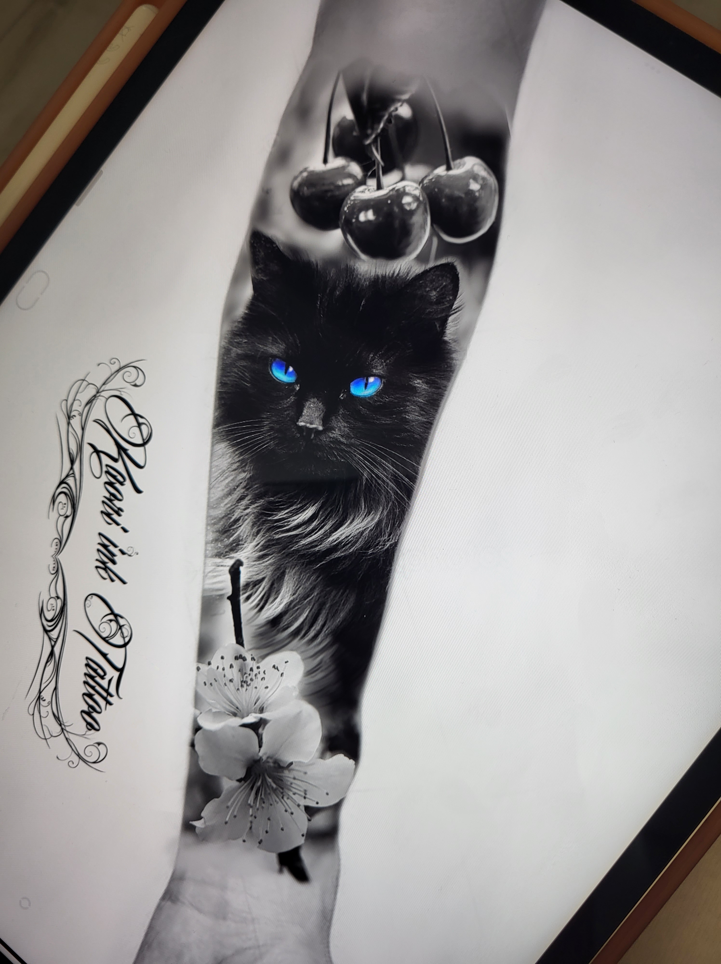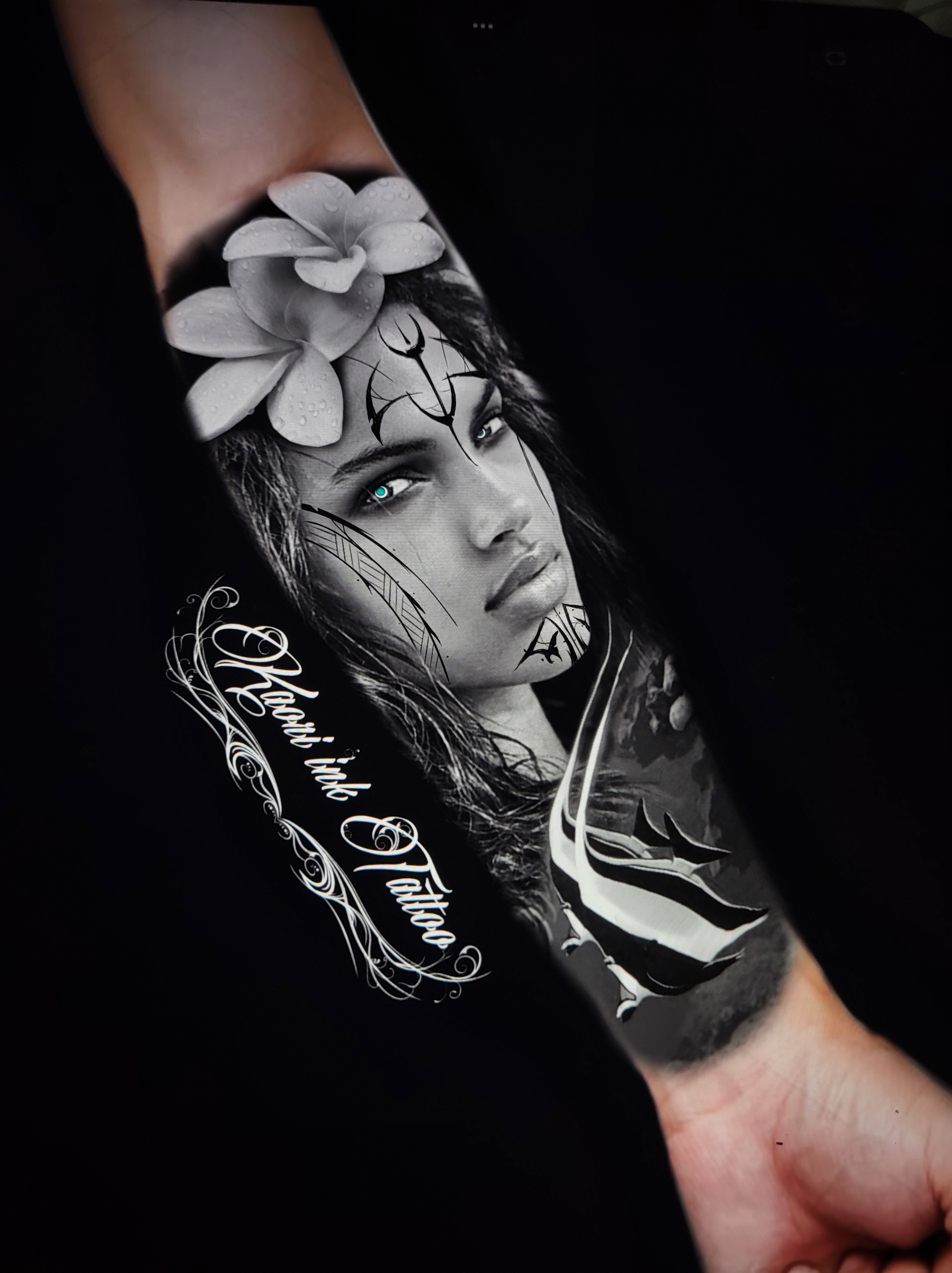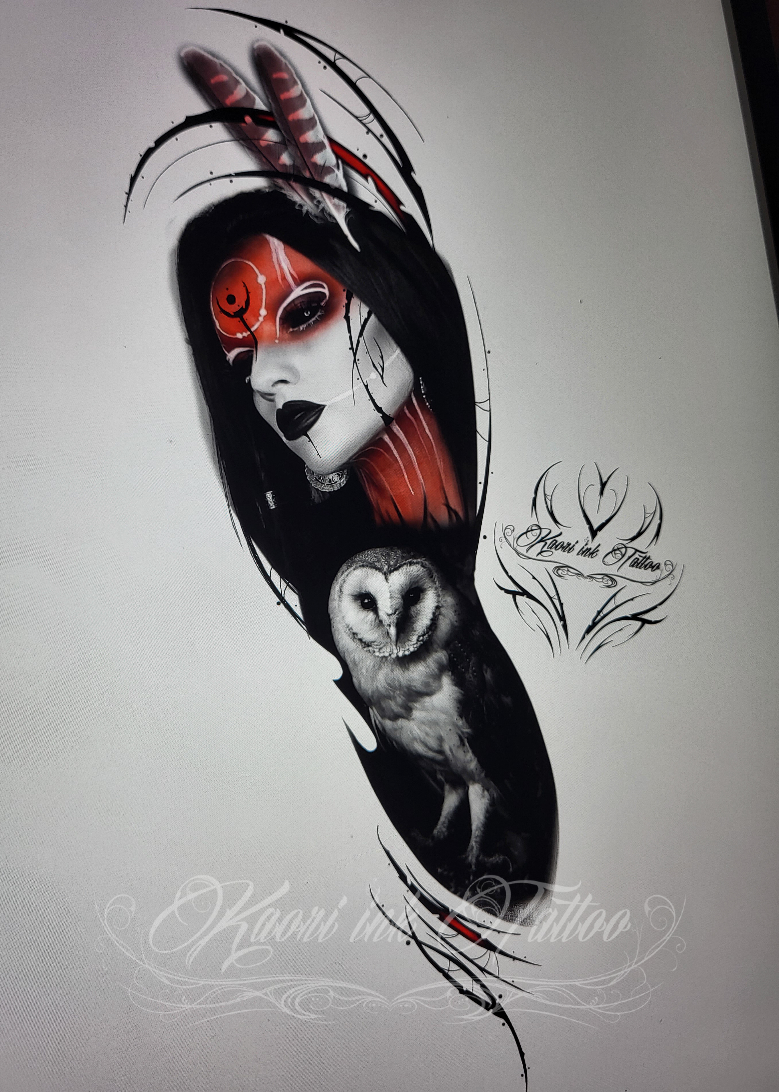 Donnez un thème / une idée globale sans trop détailler votre demande, afin de laisser un peu de marche de manoeuvre pour créer votre projet et ne pas être bloquée par trop de détails exigés (cela peut couper la créativité d’un artiste). Ma spécialité est en 1er lieu le portrait exclusivement féminin, j’ajoute ensuite différents éléments à la composition tels que des animaux, des paysages, du végétal ou univers dark (crâne de mort, autres). Je pratique également le dark lettering/dark ornemental seul, qui est un style assez récent dans le milieu du tatouage. N’hésitez pas à m’en demander, ça sera avec plaisir également.